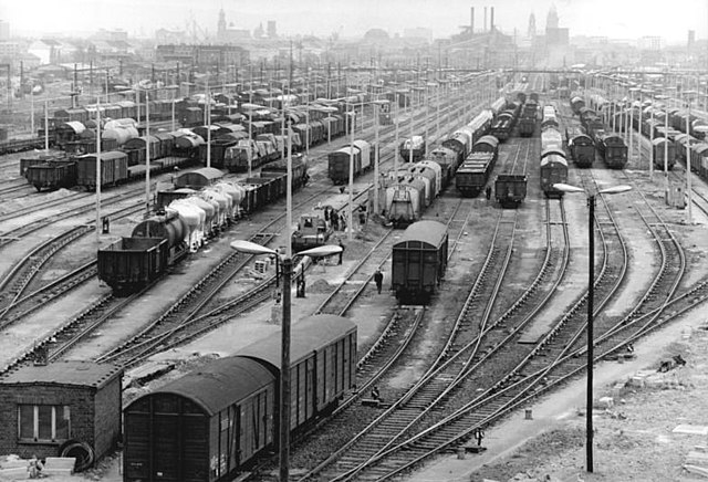 In the dimly lit control room atop the freight yard control tower, the night shift yard attendant took a bite from his bierwurst sandwich, looked up from his newspaper and glanced out into the night. Through the mist in the distance, he saw a group of six men converge, exchange some words and salutes, then separate. Four men stalked off towards town, two towards the wharves along the Rhine. They appeared to have sacks slung over their shoulders. One of them, a giant of a man, carried two sacks. “Coppers are potato thieves now, go figure,” he muttered to himself. He turned his eyes back to the rugby scores.